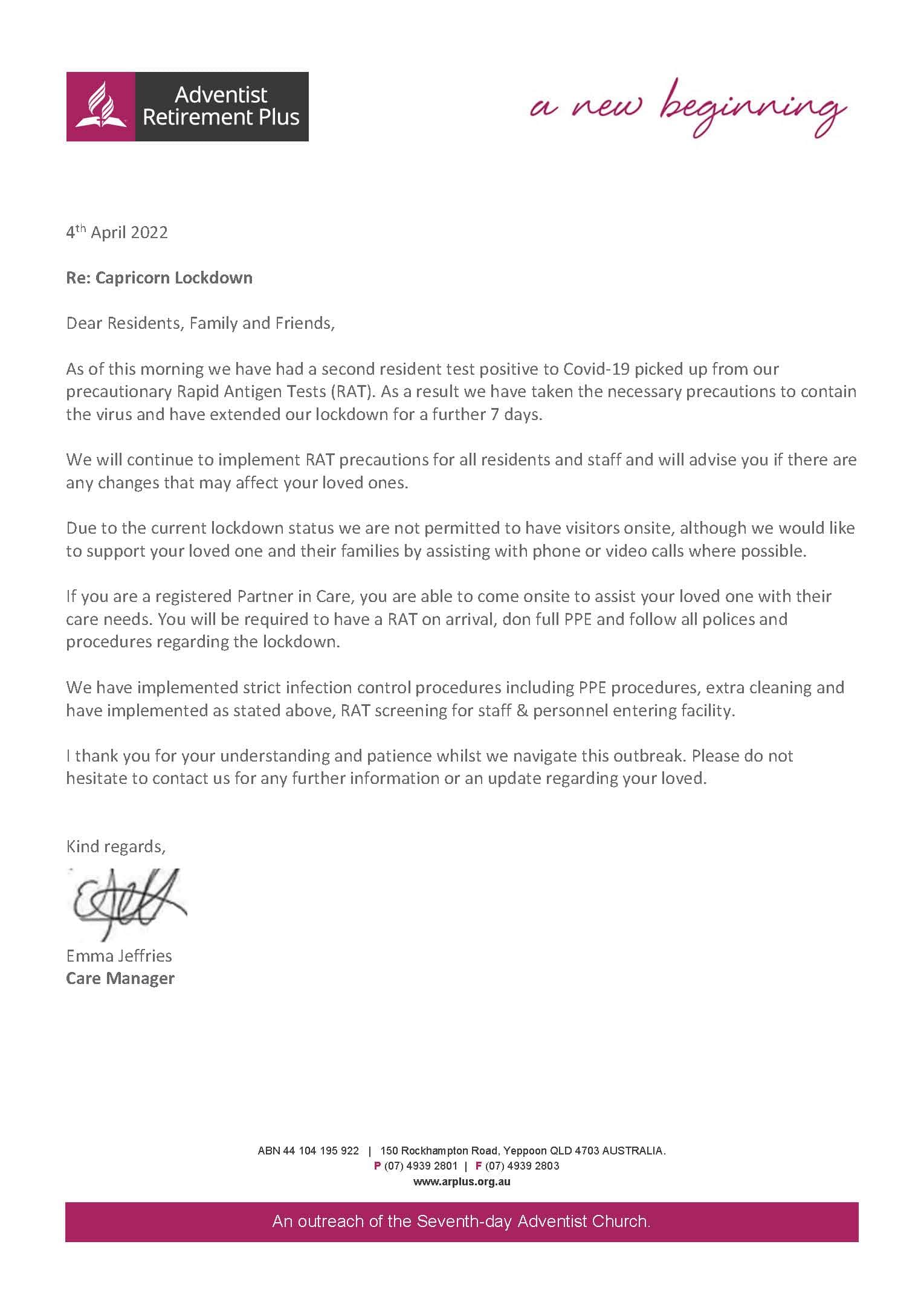 Update on Wisteria Lodge/Melody Park – currently in Lockdown